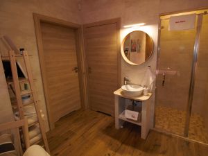 Na parterze usytuowana jest duża łazienka z kabiną prysznicową, wanną z chromoterapią oraz toaletą. Chromoterapia to metoda polegająca na eksponowaniu zmysłu wzroku na różne barwy. Zwolennicy chromoterapii mówią o jej pozytywnym wpływie na samopoczucie. Kąpiel w wannie z chromoterapią to świetny sposób na relaks po dniu spędzonym na stoku narciarskim czy też pieszych lub rowerowych wycieczkach.